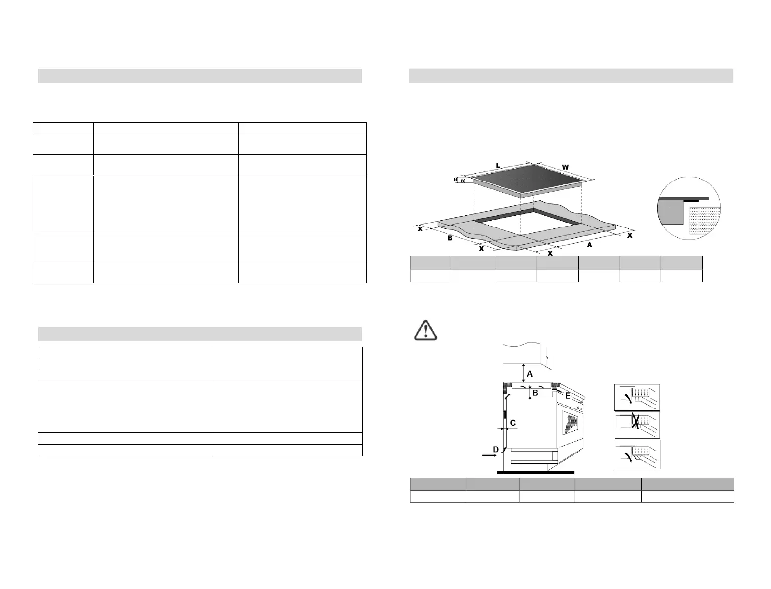 sági A főzőlap és a főzőlap fölötti konyhaszekrény között bizton Megjegyzés: