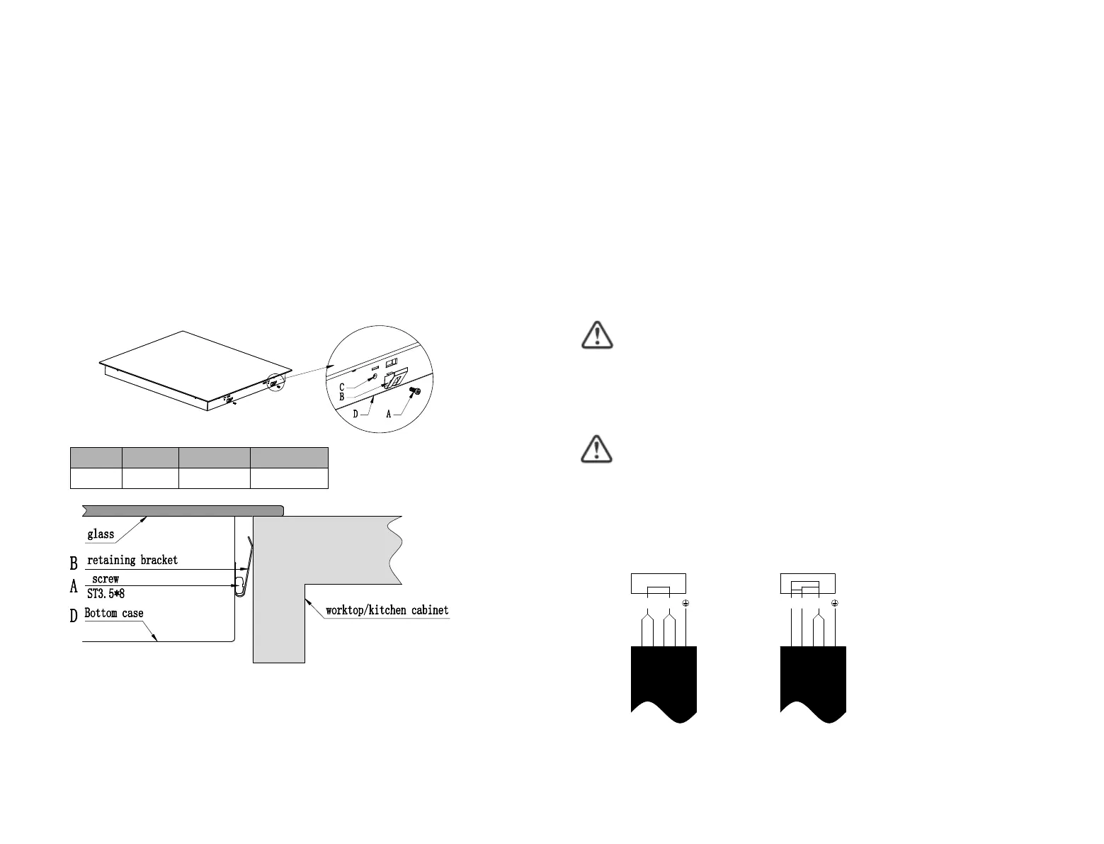 Fix the hob on the work surface by screw 4 brackets on the bottom case of hob