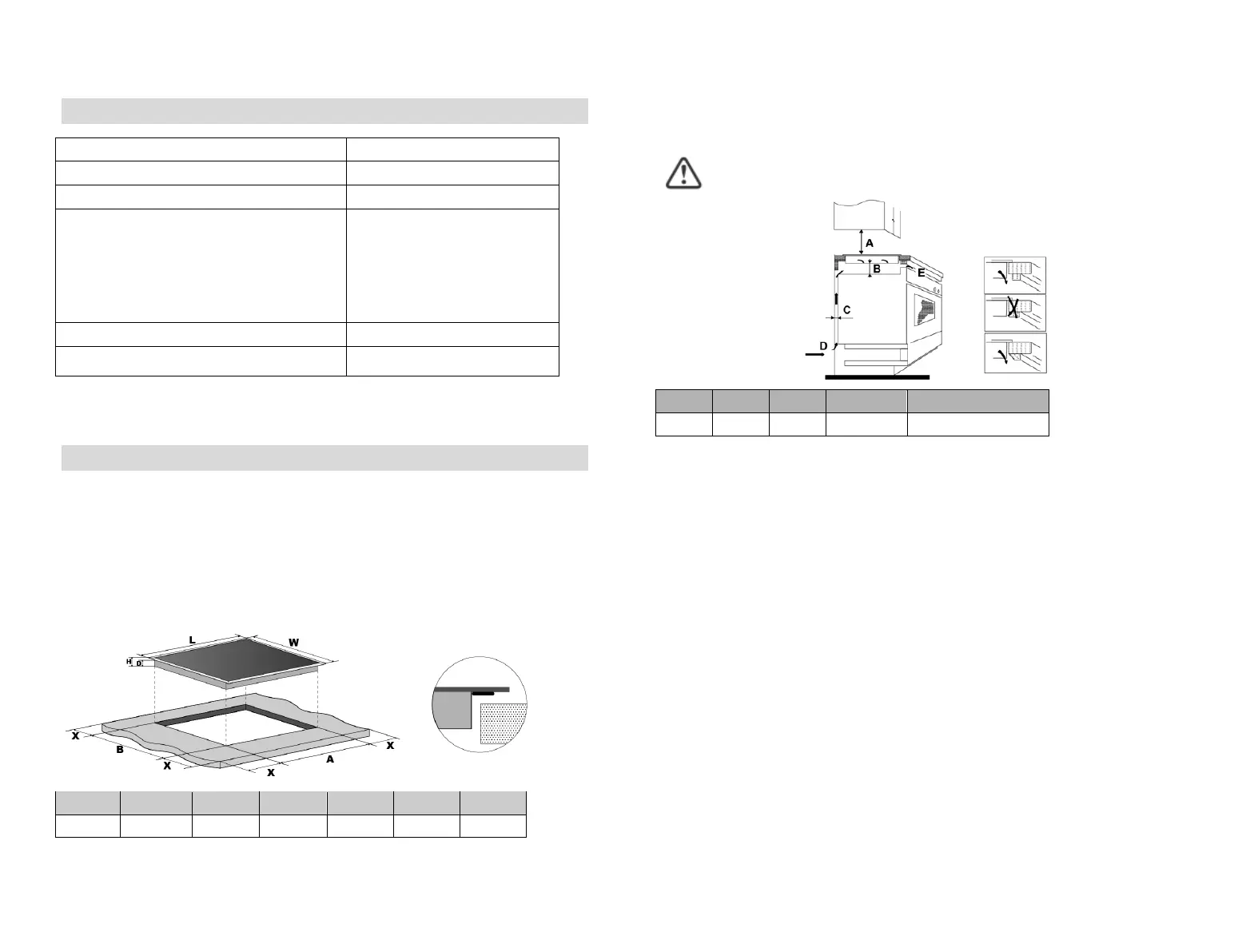 • wenn das Kochfeld über einem Backofen installiert wird, der Backofen mit einem