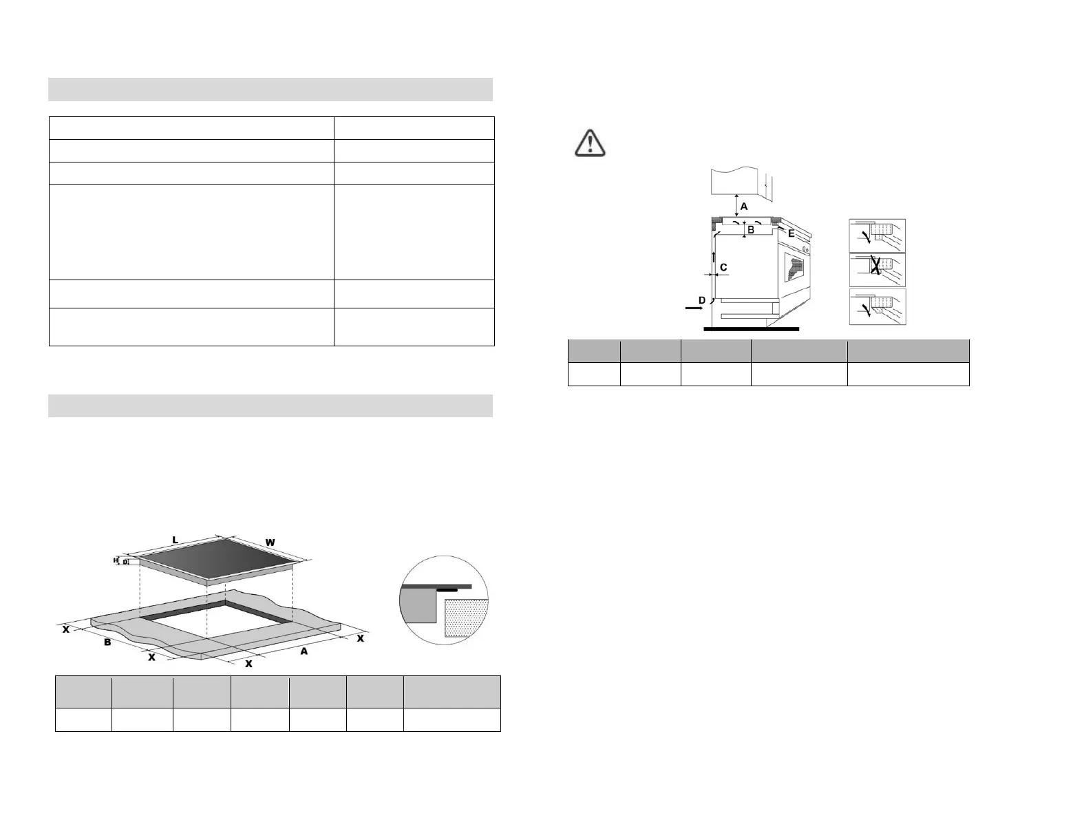 Uwaga: bezpieczna odległość pomiędzy płytą a znajdującą się nad płytą