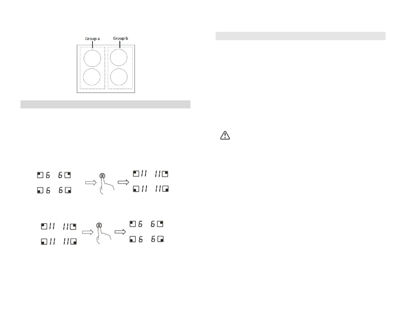 2. Touch the button STOP+GO, the cooking zone indicator will show “ll”.