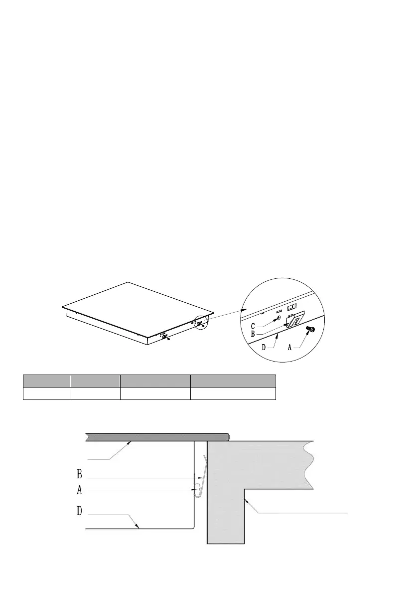 Fixieren Sie das Kochfeld nach dem Einbau in die Arbeitsfläche mit 4 angeschraubten