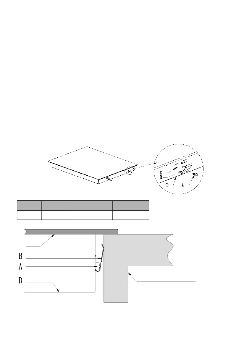 donjem kućištu ploče za kuvanje (videti sliku) nakon ugradnje.