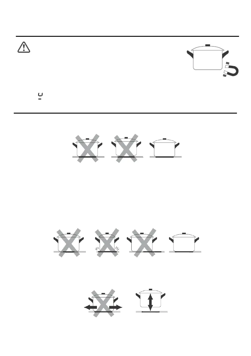an den Topfboden. Wird der Magnet angezogen, ist der Topf oder die