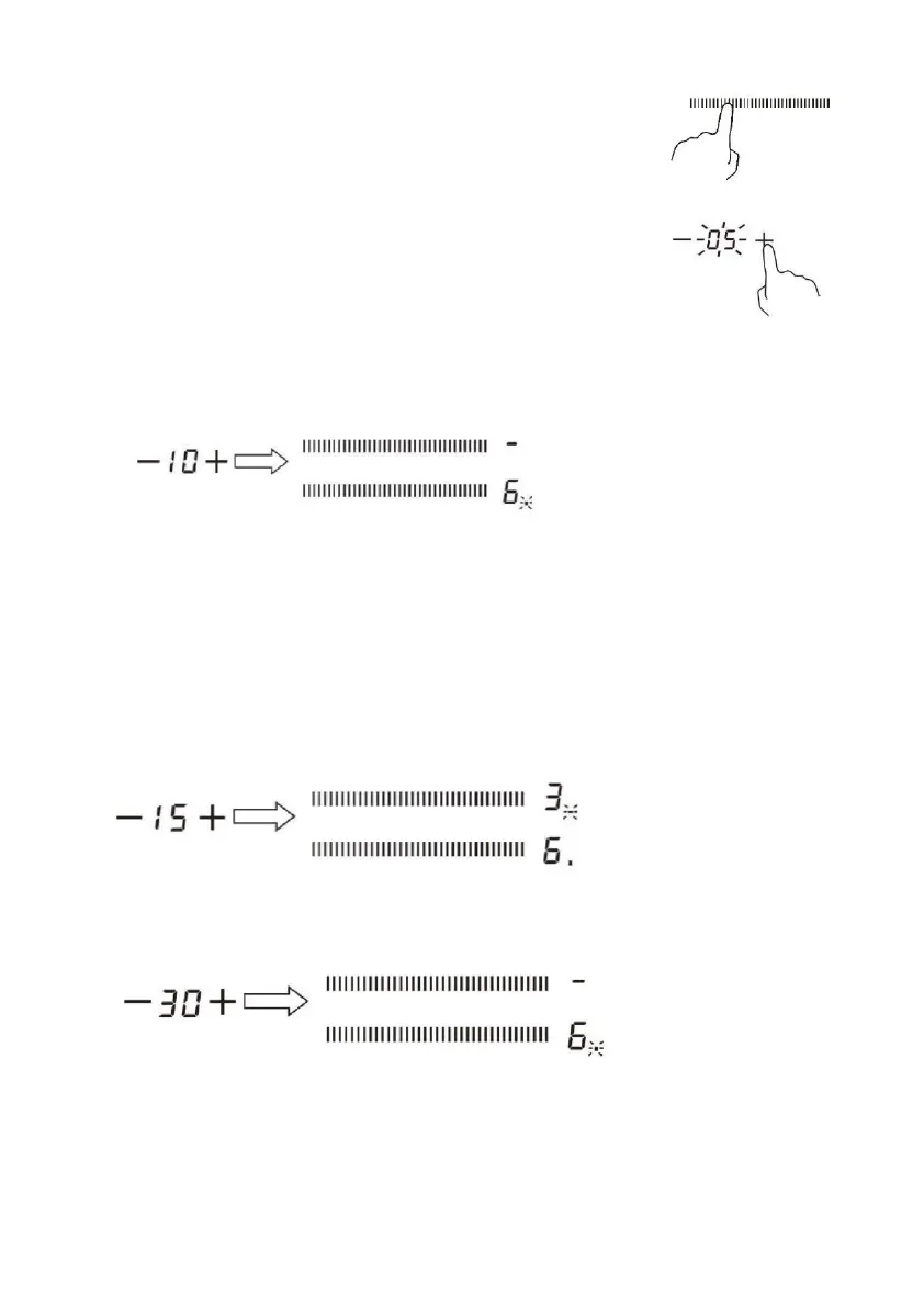 príslušných varných zón. Na displeji časovača sa zobrazuje min. časovač.