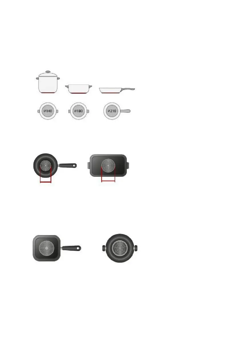 De acordo com a dimensão da zona pode usar panelas de diferentes diâmetros