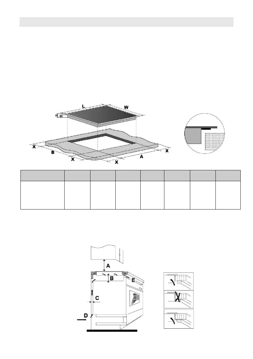 Nota: A distância de segurança entre a placa quente e o armário acima desta deve ser