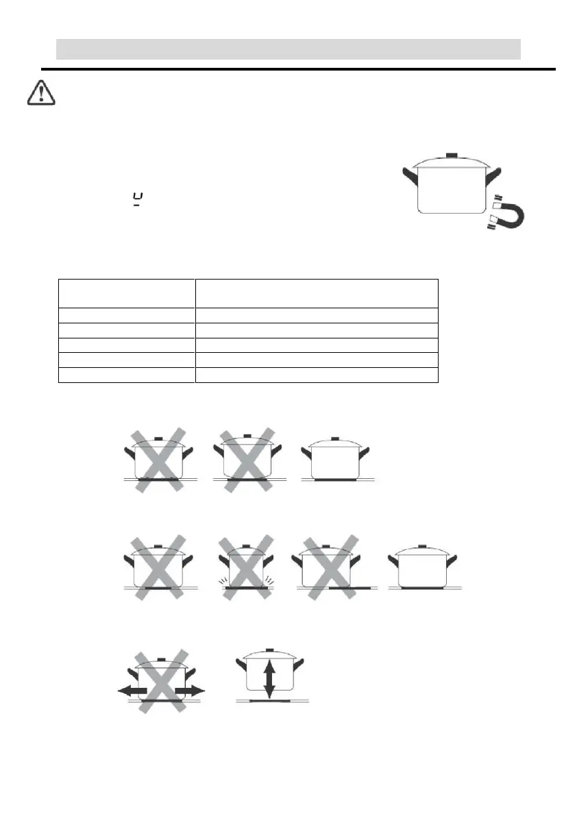 • Adoperare pentole il cui diametro dell’area ferromagnetica (base della pentola) rientri