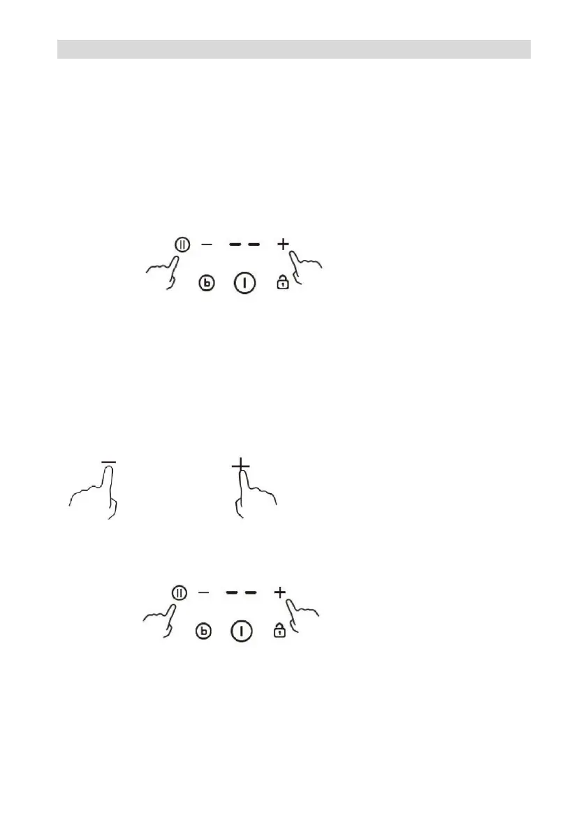 1. Accendere il piano di cottura, quindi premere contemporaneamente i tasti “+” (timer) e
