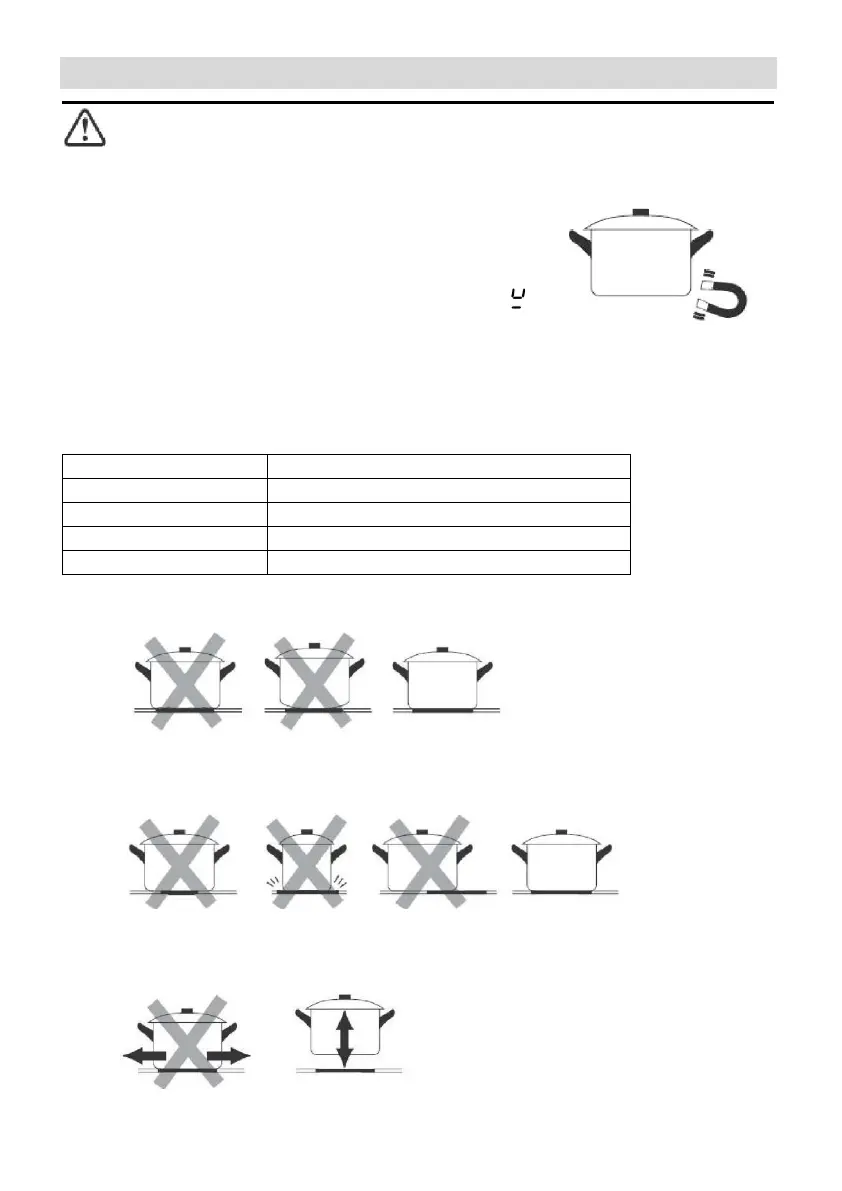• Používajte iba riad so základňou vhodnou na indukčné varenie.