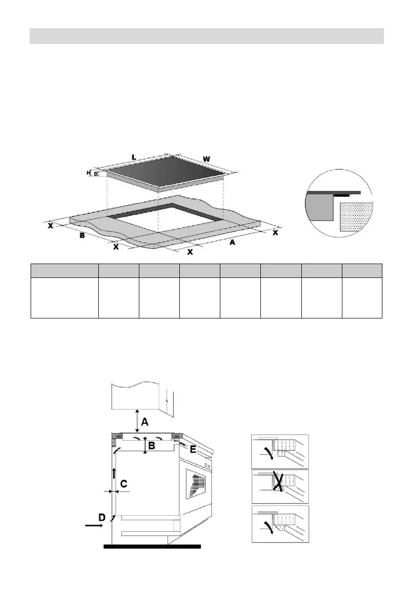 Poznámka: Bezpečná vzdialenosť medzi varnou doskou a skrinkou nad ňou musí byť