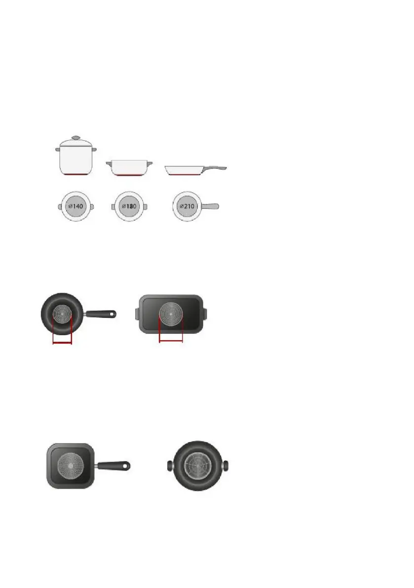 U skladu s dimenzijom zone, možete upotrebljavati lonce različitih promjera