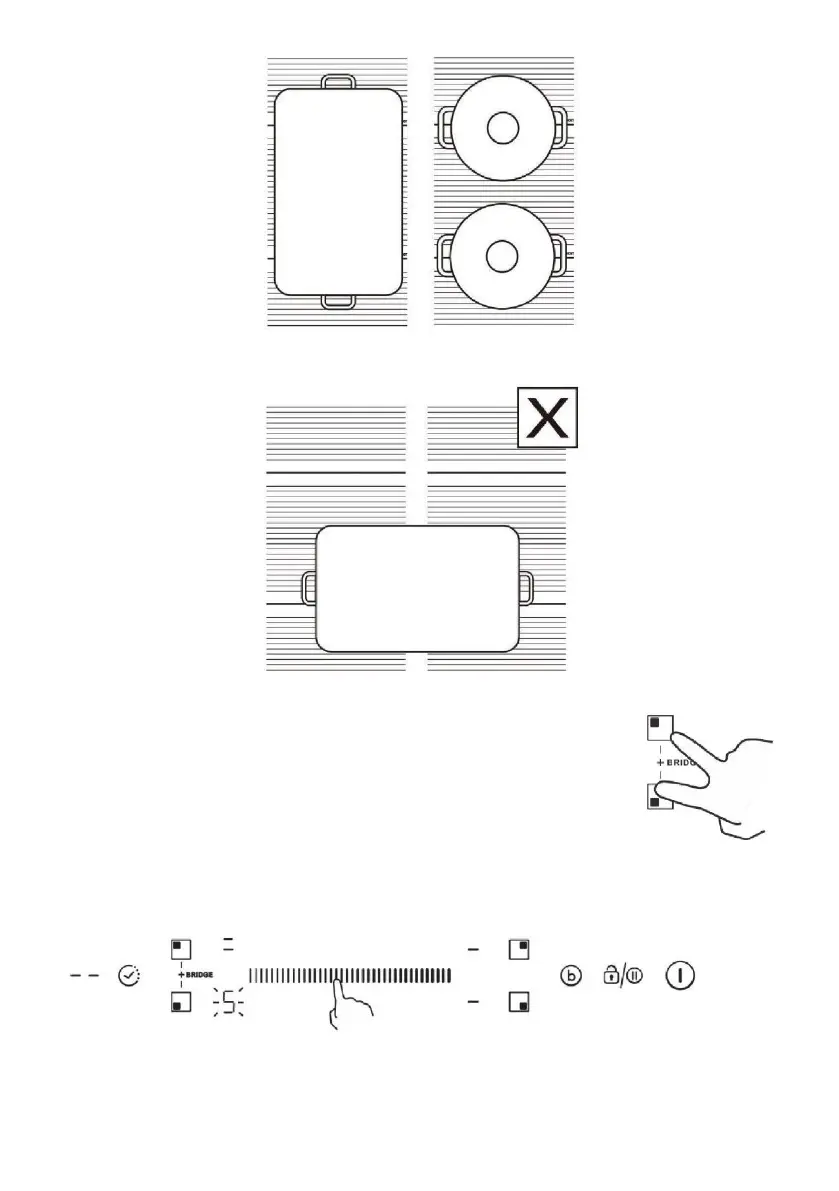 Jedna ploča za kuhanje s više od jedne fleksibilne zone, ne preporučuje se