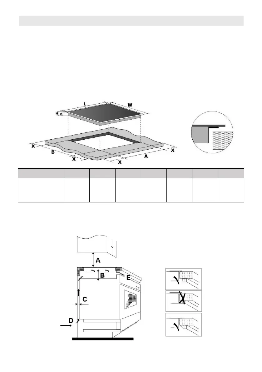 • Upewnij się, że grubość blatu wynosi co najmniej 30 mm. Wybierz żaroodporny