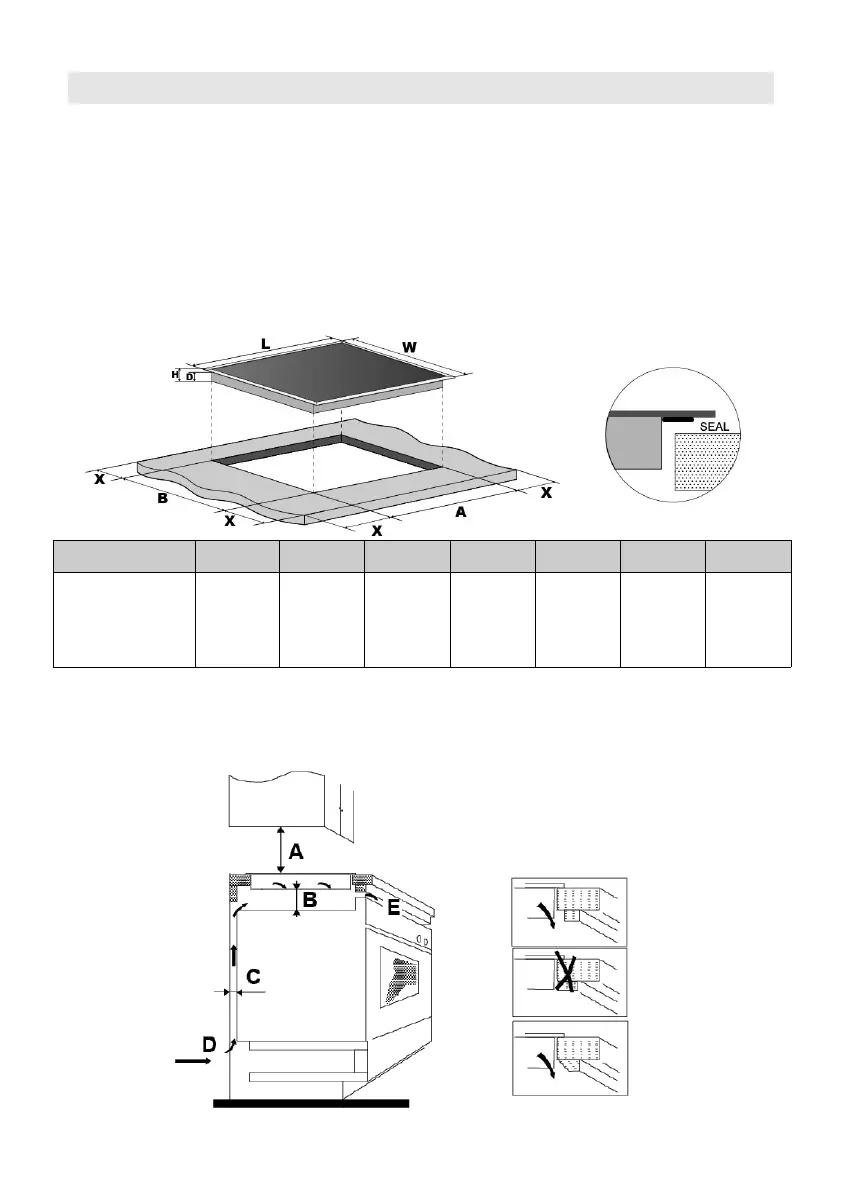 Note: The safety distance between the hotplate and the cupboard above the hotplate