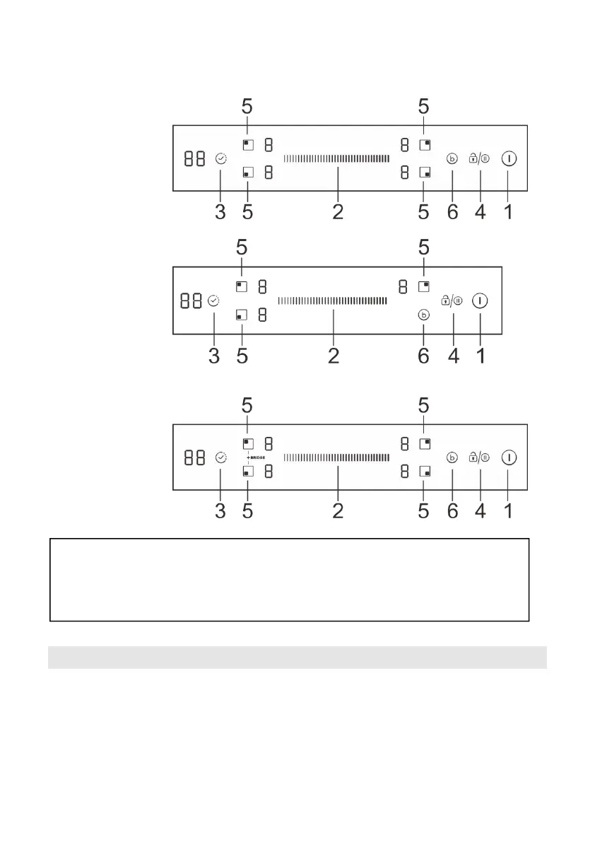 2. Power/Timer regulating key 5. Heating zone selection controls
