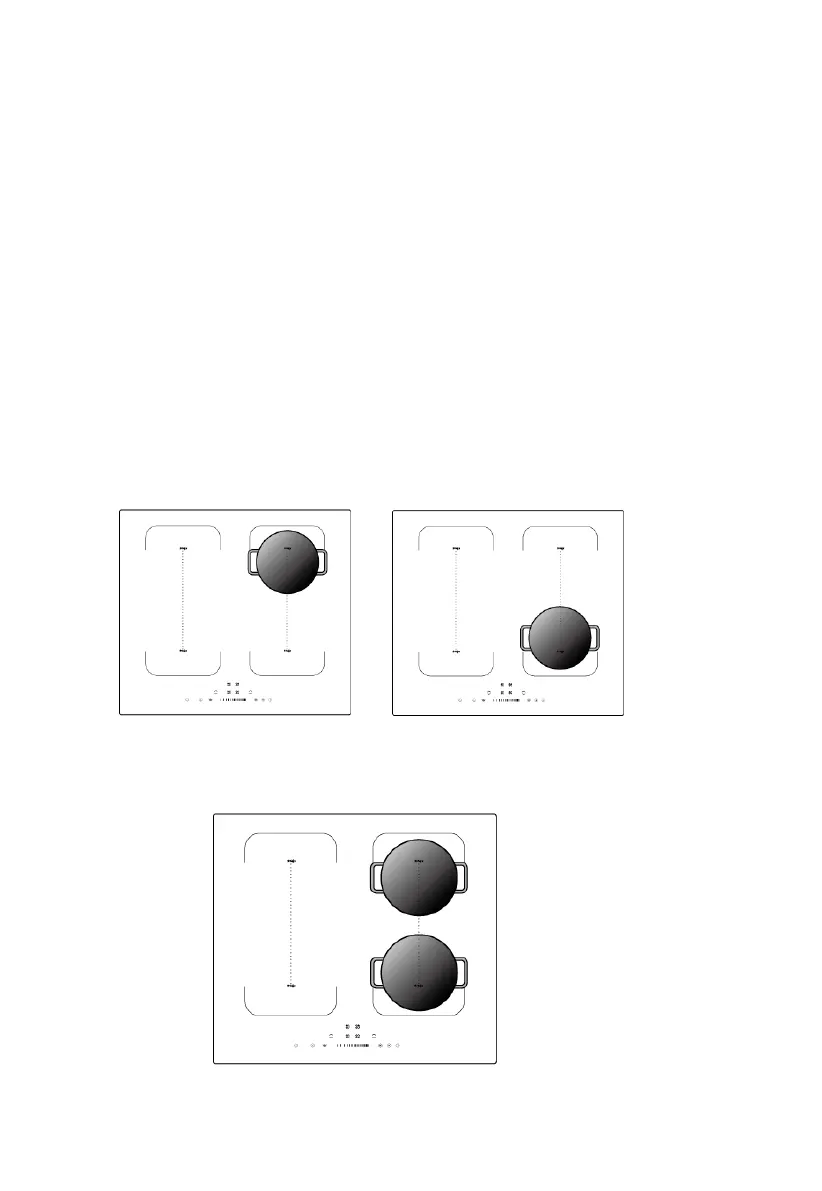 (b) Ponha duas panelas em ambos os lados da zona flexível.