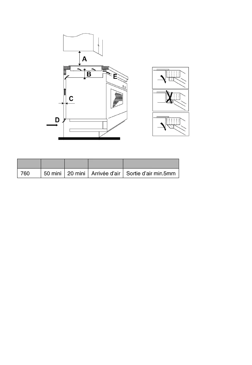 • si la table est installée au-dessus d’un four, le four est équipé d’une turbine de