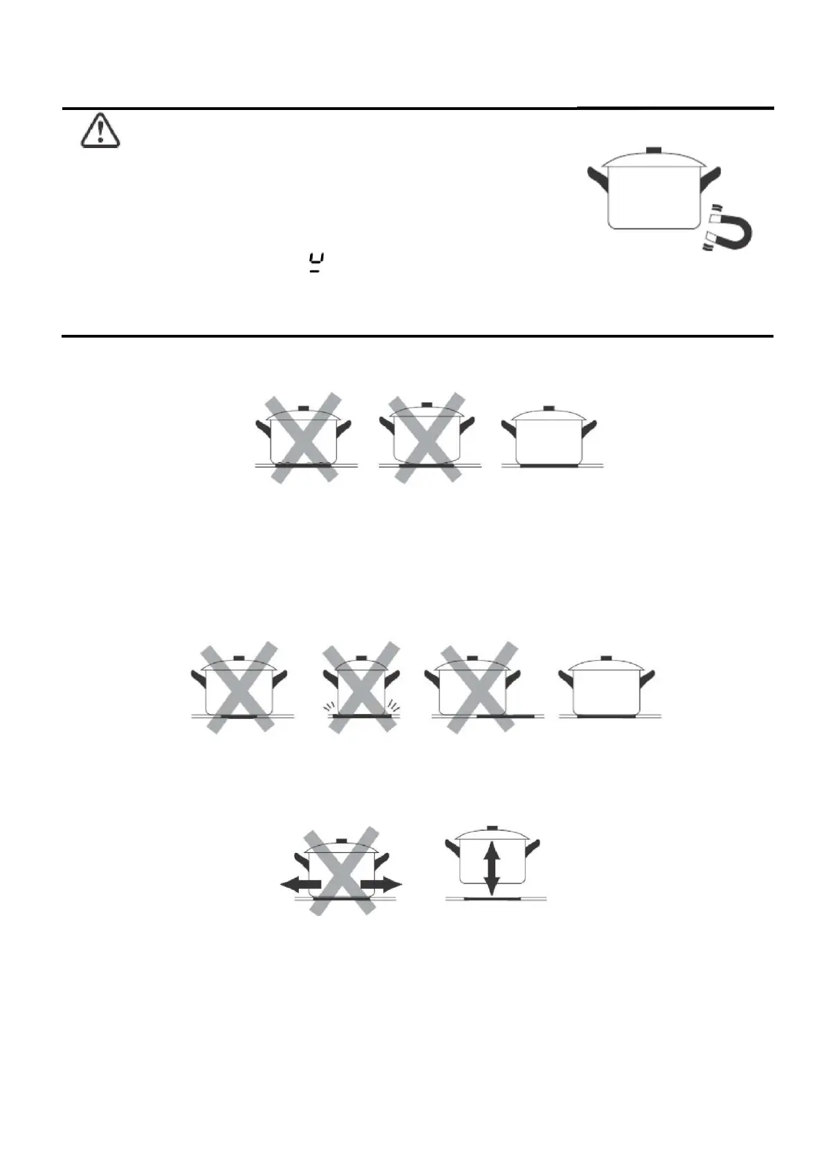 Пересвідчіться, що дно посуду гладеньке, рівно стоїть на склі, а його розмір збігається з розміром зони приготування. Використовуйте посуд,