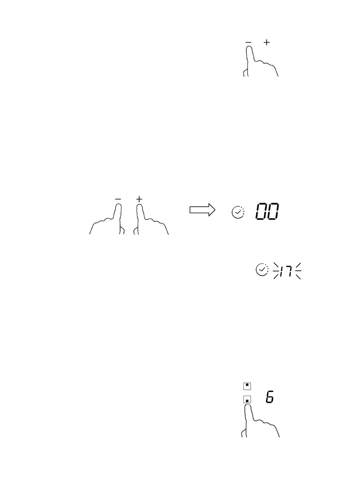 Tenere premuto il tasto a sfioro "-" o "+" del timer per diminuire o aumentare il