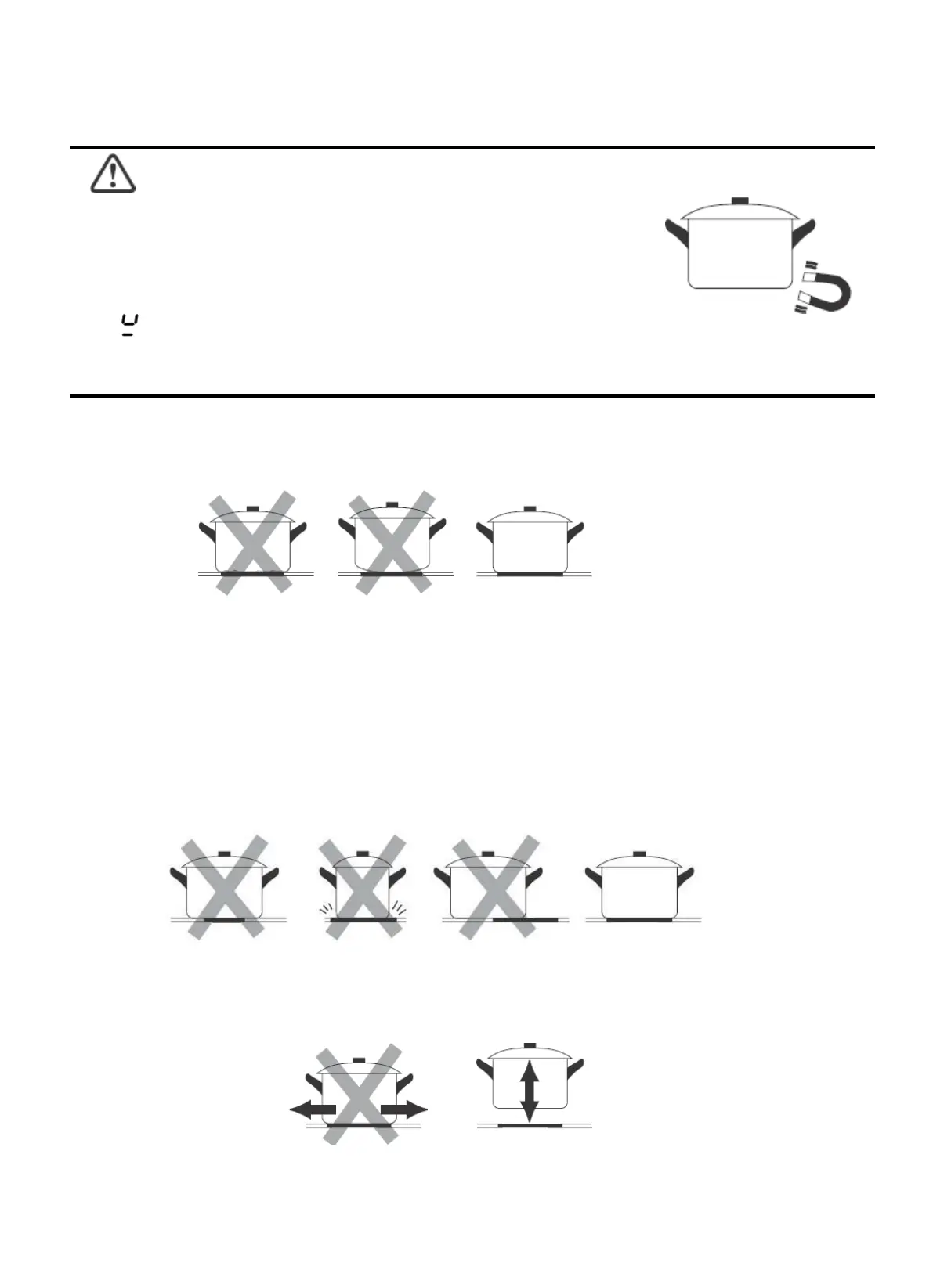 • Cookware made from the following materials is not suitable: pure stainless steel, aluminium
