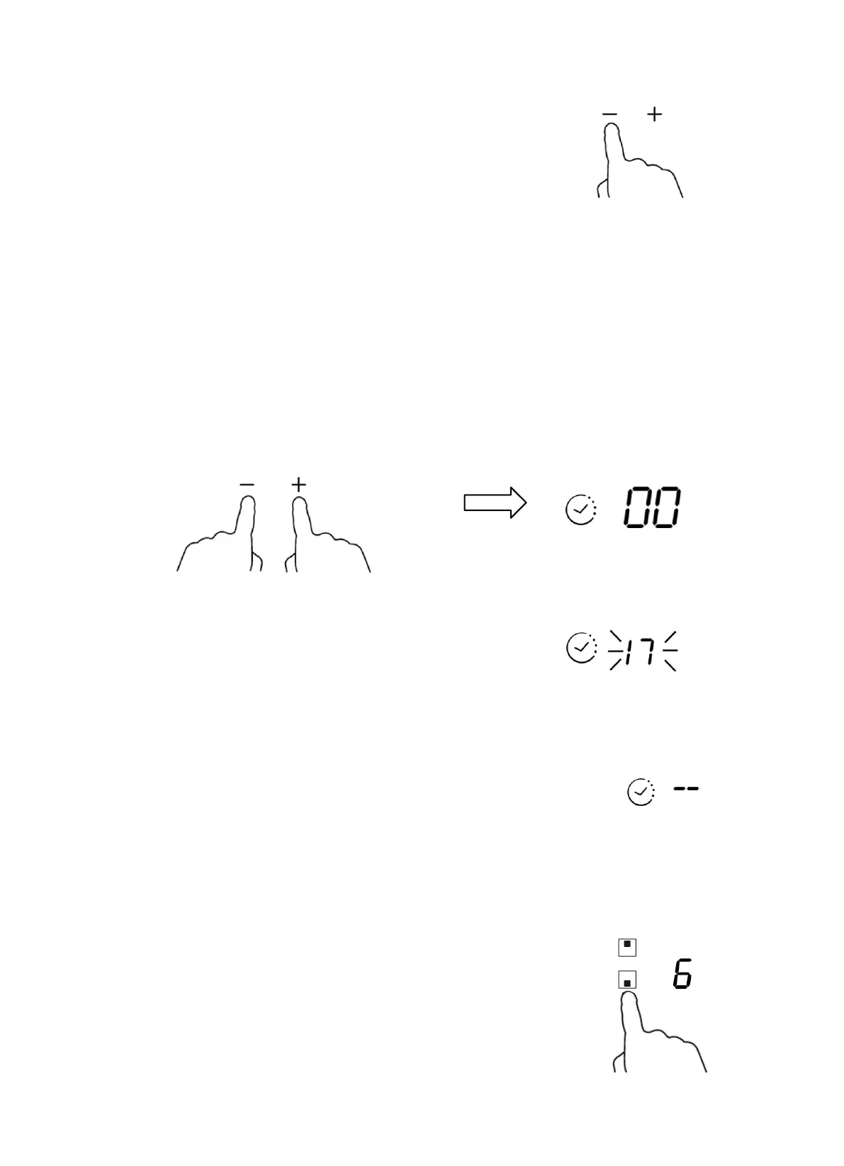 Toque “-” y “+” a la vez para cancelar el temporizador y que aparezca “00” en el