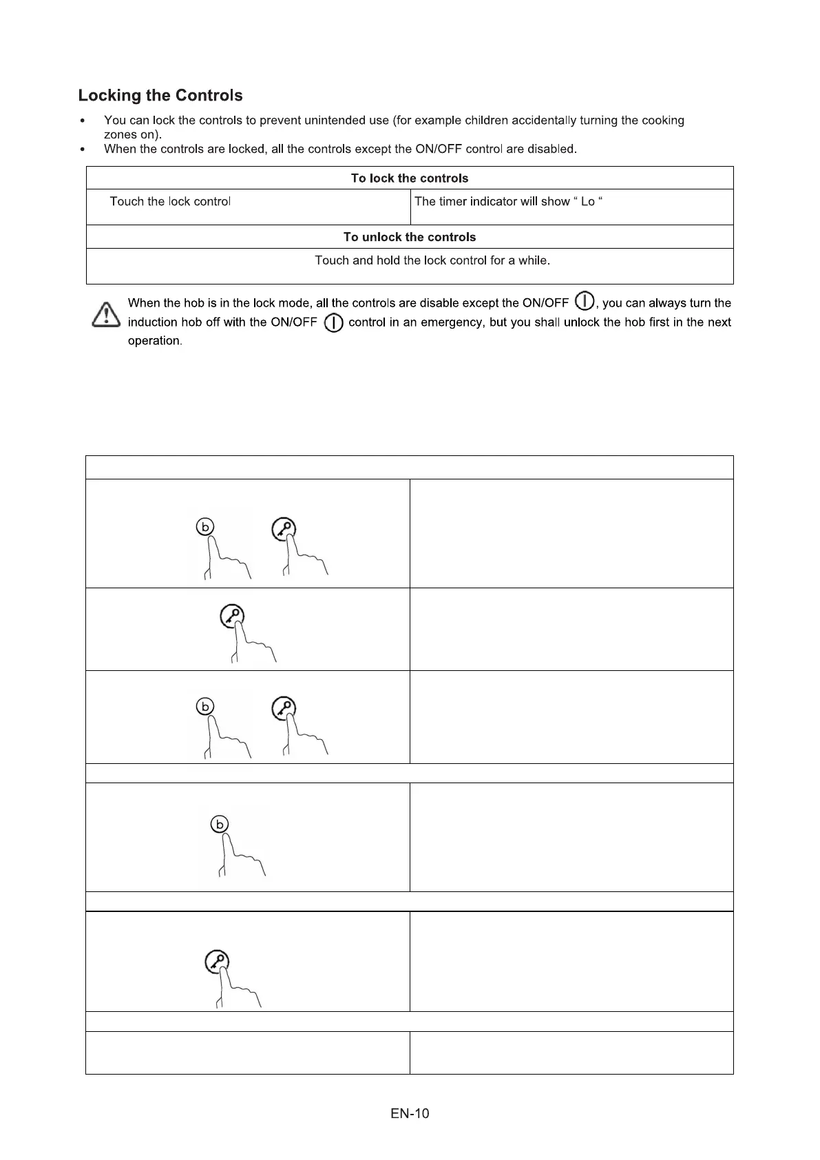 • It is not necessary to put any pots on the heating zones. We suggest to start setting within 5 seconds after connecting the