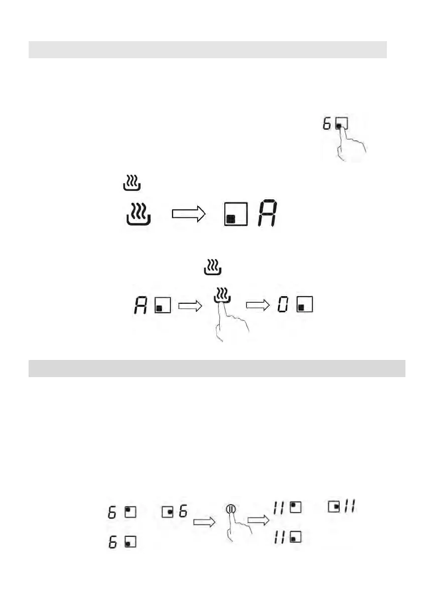 2. Touch the button , the cooking zone indicator will display “A”.