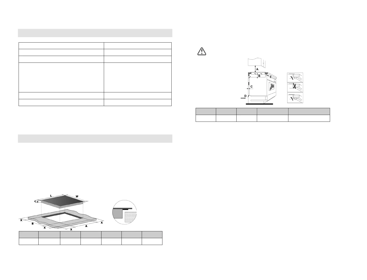 Nota: A distância de segurança entre a placa quente e o armário acima