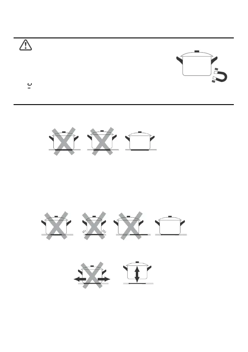 • Cookware made from the following materials is not suitable: pure stainless steel, aluminium or