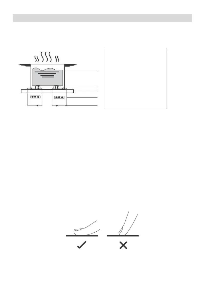 niet bedekt worden door een voorwerp (bijv. keukengerei of een doek). Zelfs