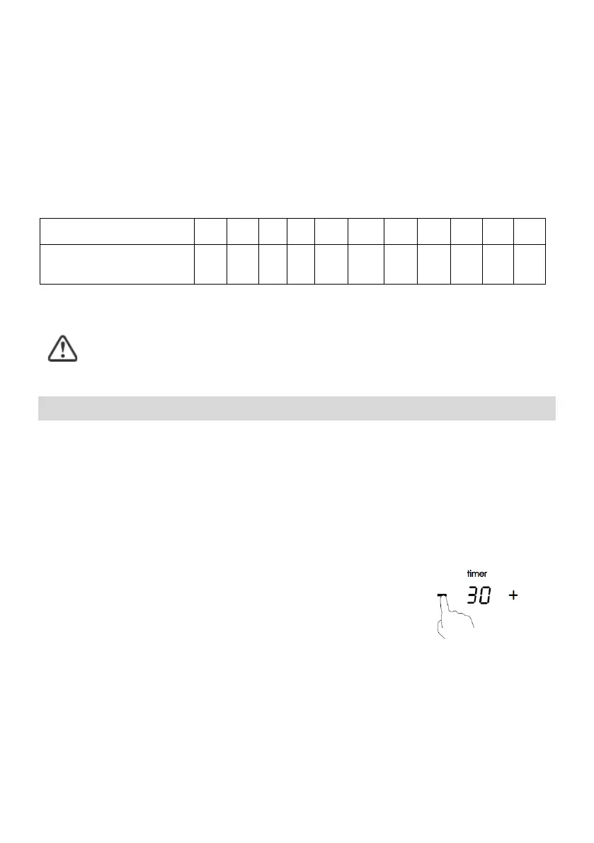 of te verhogen. Blijf de toets „-” of „+” van de timer aanraken om de