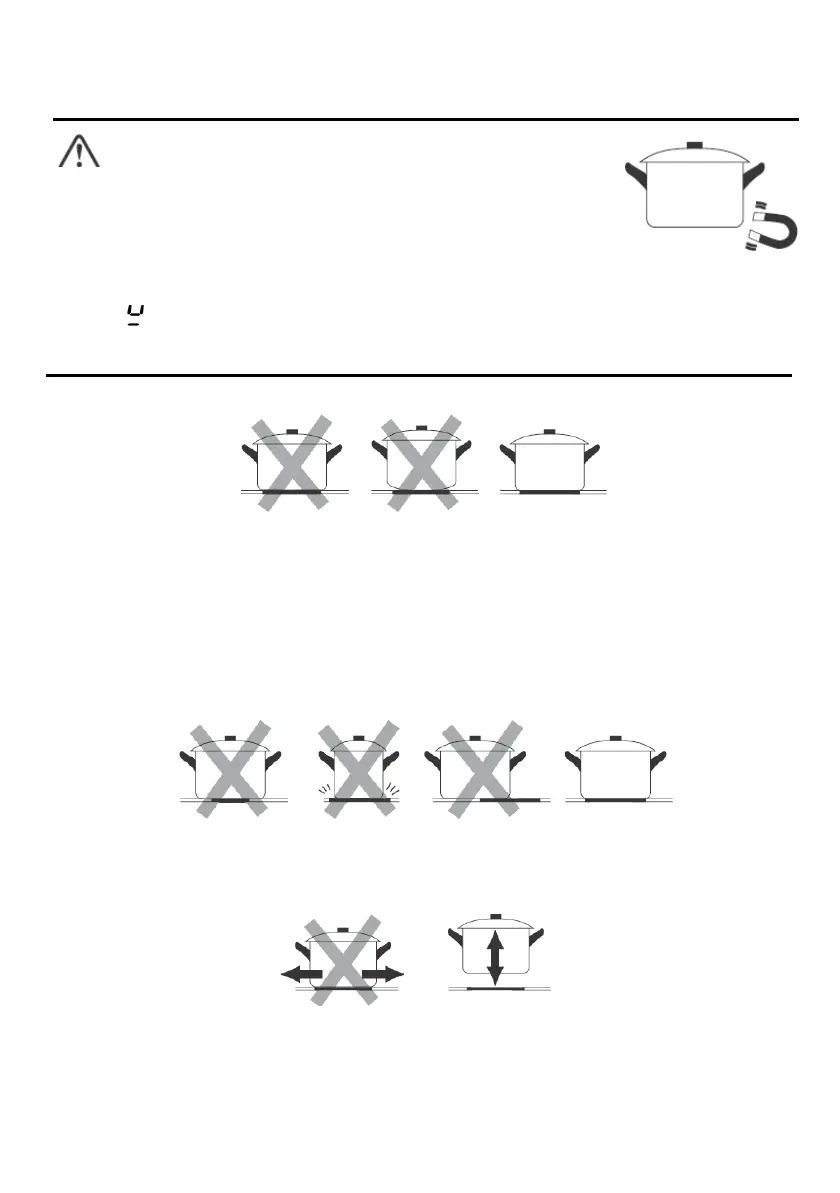 Heben Sie die Töpfe immer vom Induktionskochfeld ab - ziehen Sie Töpfe nicht, da