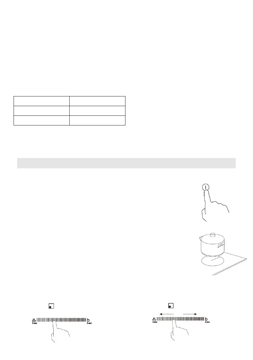 3.Select one heating zone and set a power level by touching the slider, or slide