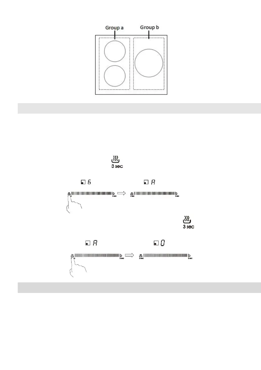 2. Touch the button STOP+GO, the cooking zone indicator will show “ll”.