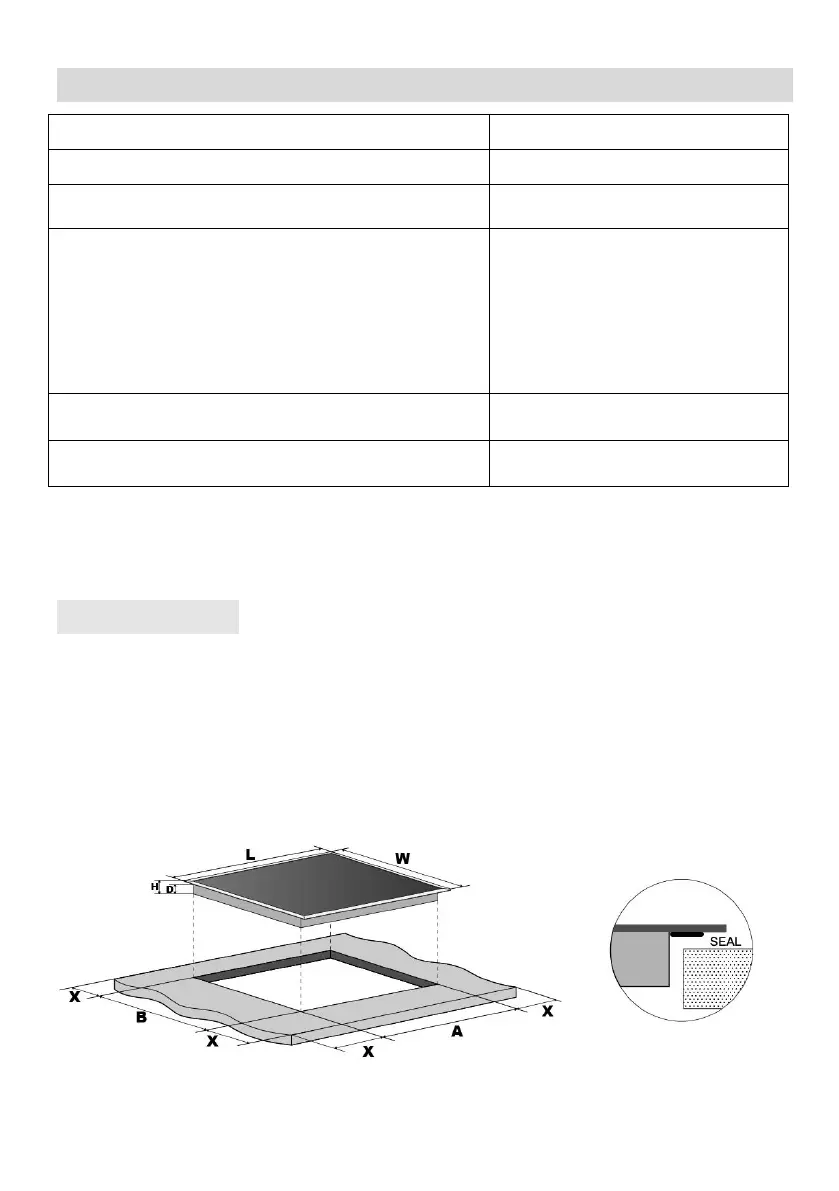Dimensions d’encastrement A×B (mm)