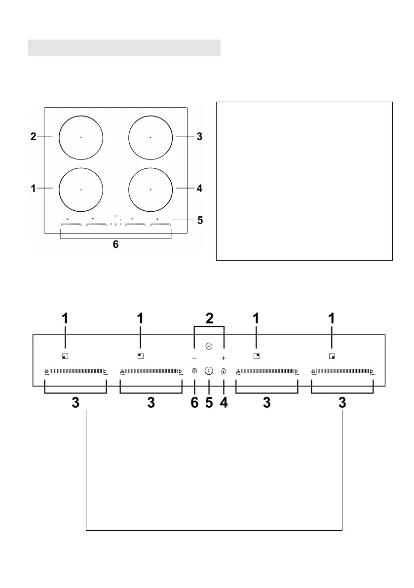 1. Indicador de selección de zona de cocción