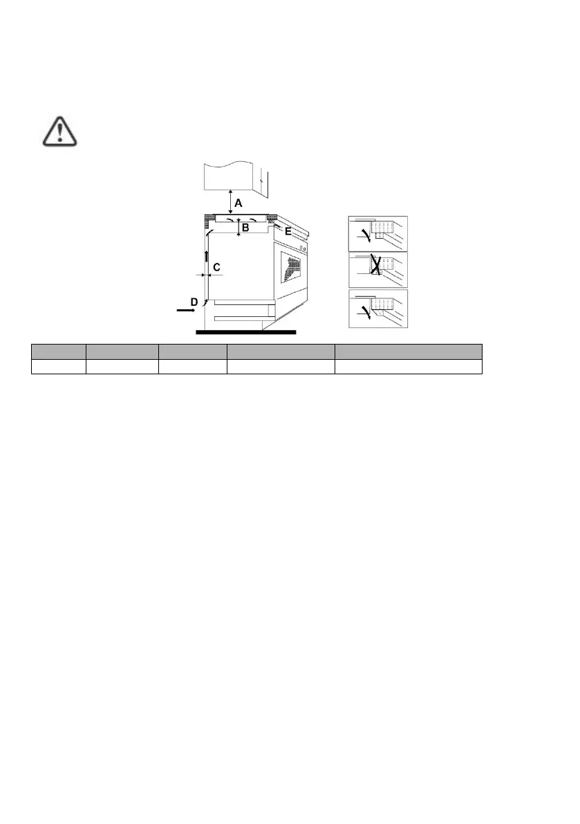 Nota: Entre la placa y el armario situado encima de ella debe haber