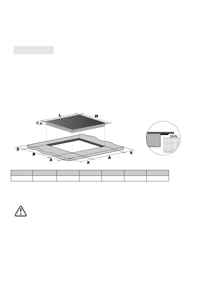 Вырежьте в столешнице отверстие размерами, указанными на рисунке