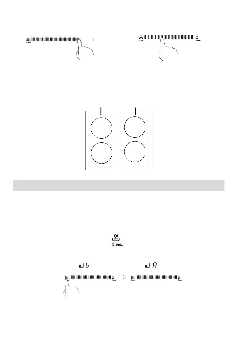 prstem podél ovladače „—“ do levého bodu, varná zóna se vrátí na stupeň výkonu, při