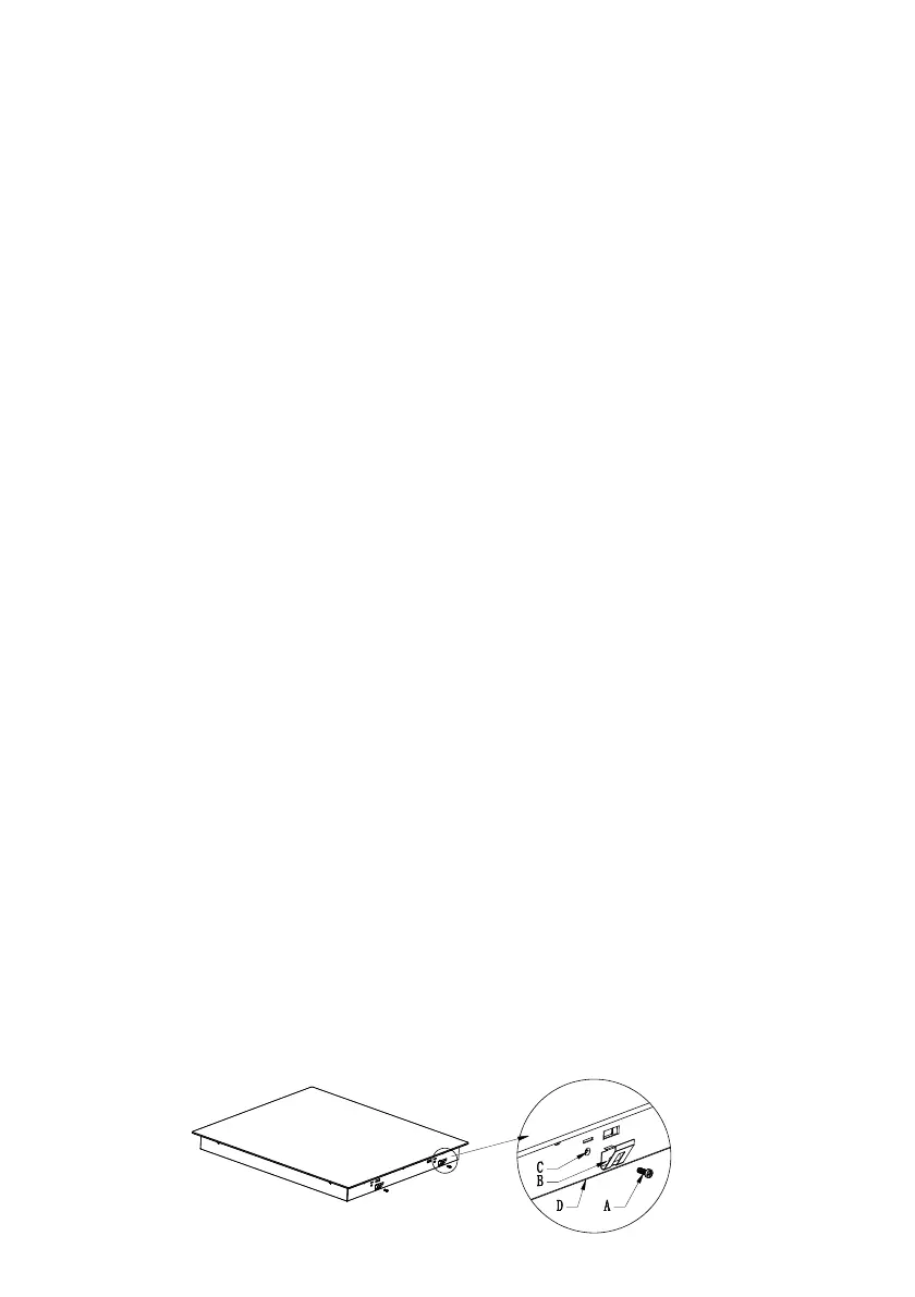 • Se a placa está instalada por cima de uma gaveta ou espaço de armário, foi