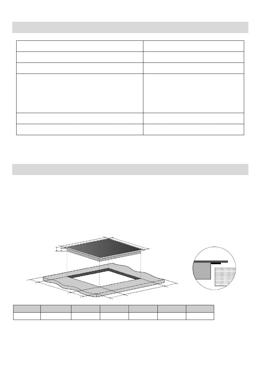 Izrežite delovno površino izrežite v skladu z merami, prikazanimi na risbi.