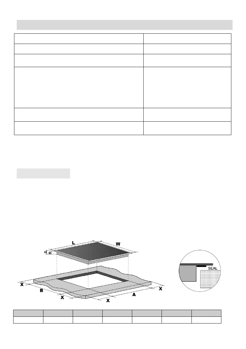 Dimensions d’encastrement A×B (mm)