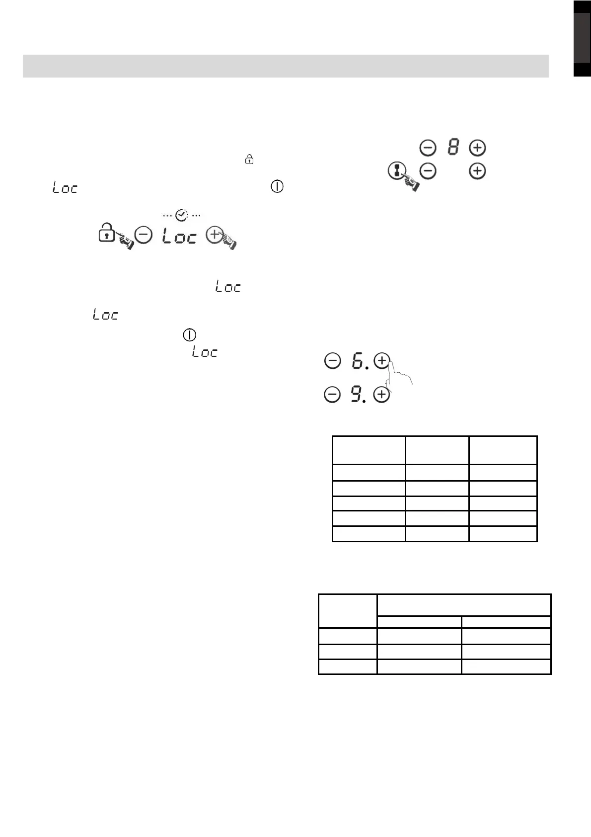 3 sekundy, płyta przejdzie w tryb blokady, zegar wyświetli