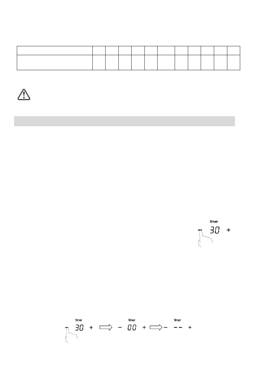 4. Anulować czas dotykając przycisku „-” regulatora czasowego i przesuwając na „0”.