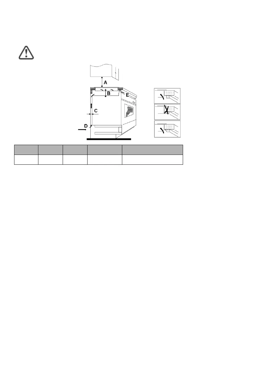 Hinweis: Der Sicherheitsabstand zwischen der Kochplatte und dem