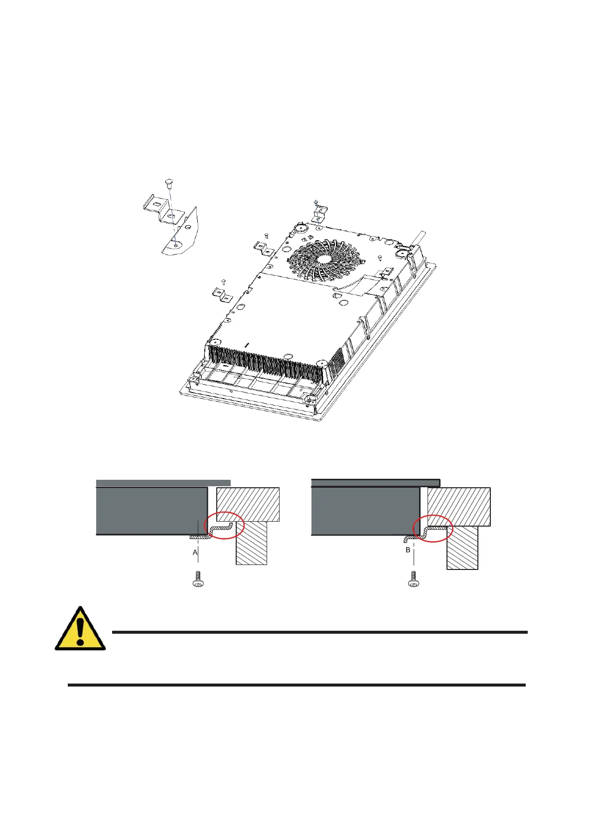 Fix the hob on the work surface by screw 4 brackets on the bottom of hob(see picture) after installation. Adjust the