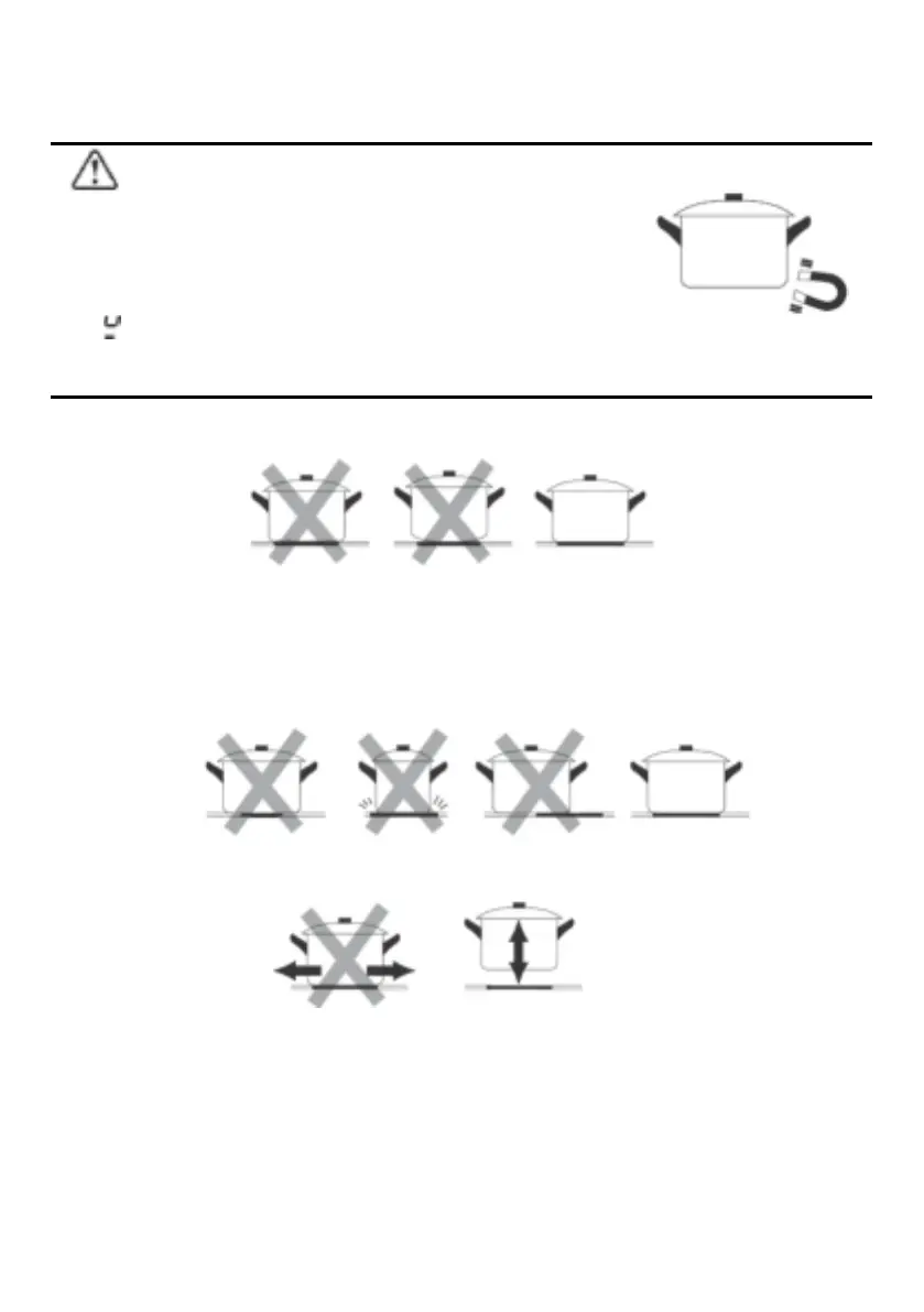 • Cookware made from the following materials is not suitable: pure stainless steel, aluminium or