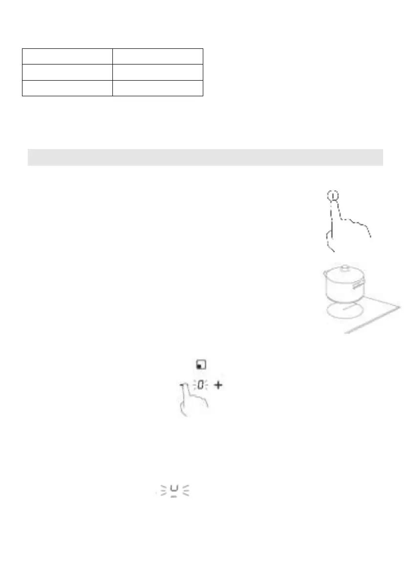 3.Select one heating zone and set a power level by touching the “-“ or “+”