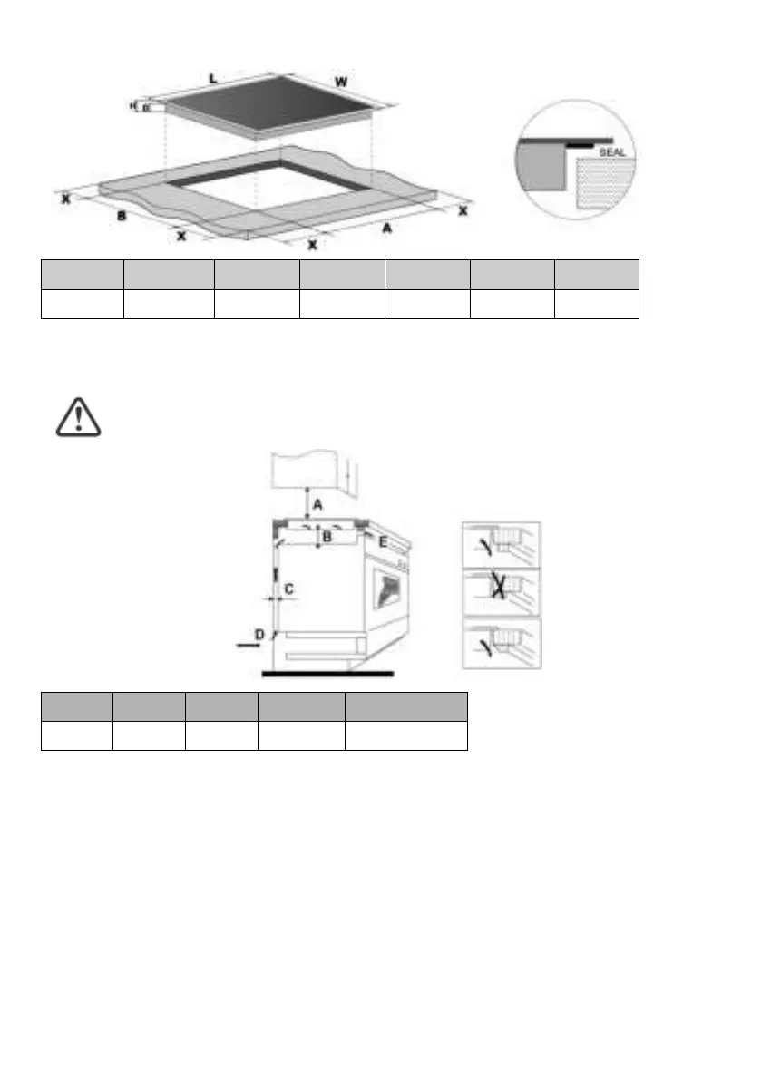 • if the hob is installed above an oven, the oven has a built-in cooling fan